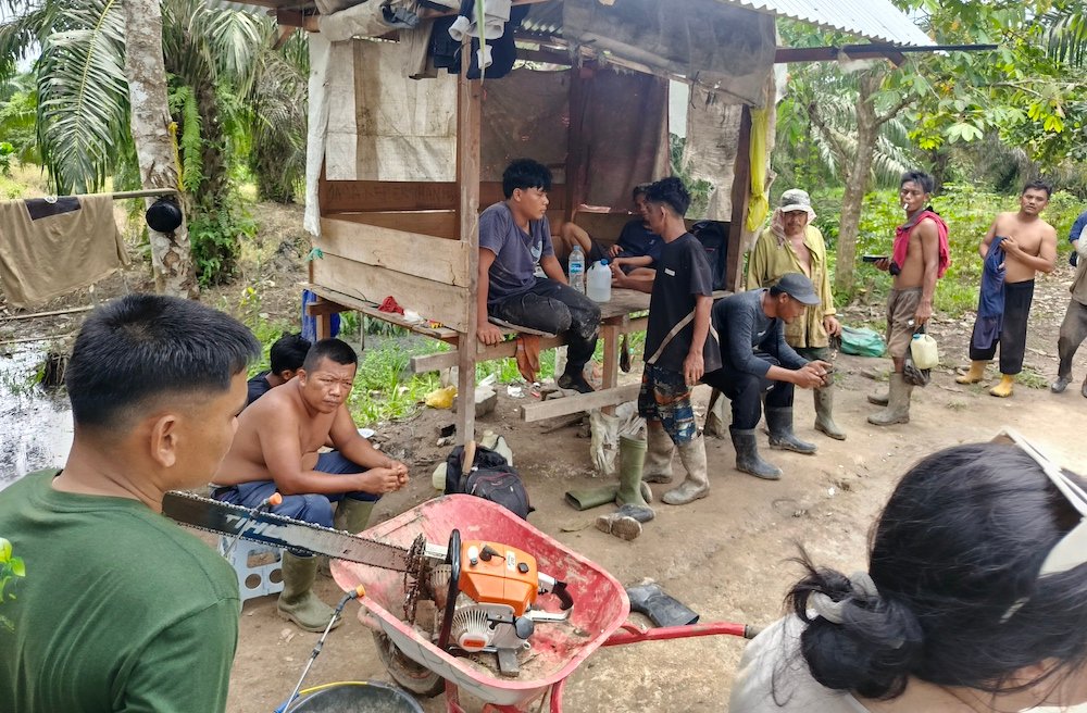 “Semalam, kami mendapati 2 orang aparat berambut cepak masuk ke dalam kawasan. Mereka mengaku suruhan dari pengusaha sawit dan membawa dokumen. Tapi mereka abai dengan plang SK Menteri terkait status kawasan yang kami kelola,” beber M Samsir, anggota Poktan Nipah, Selasa (21/10/2025) pagi.