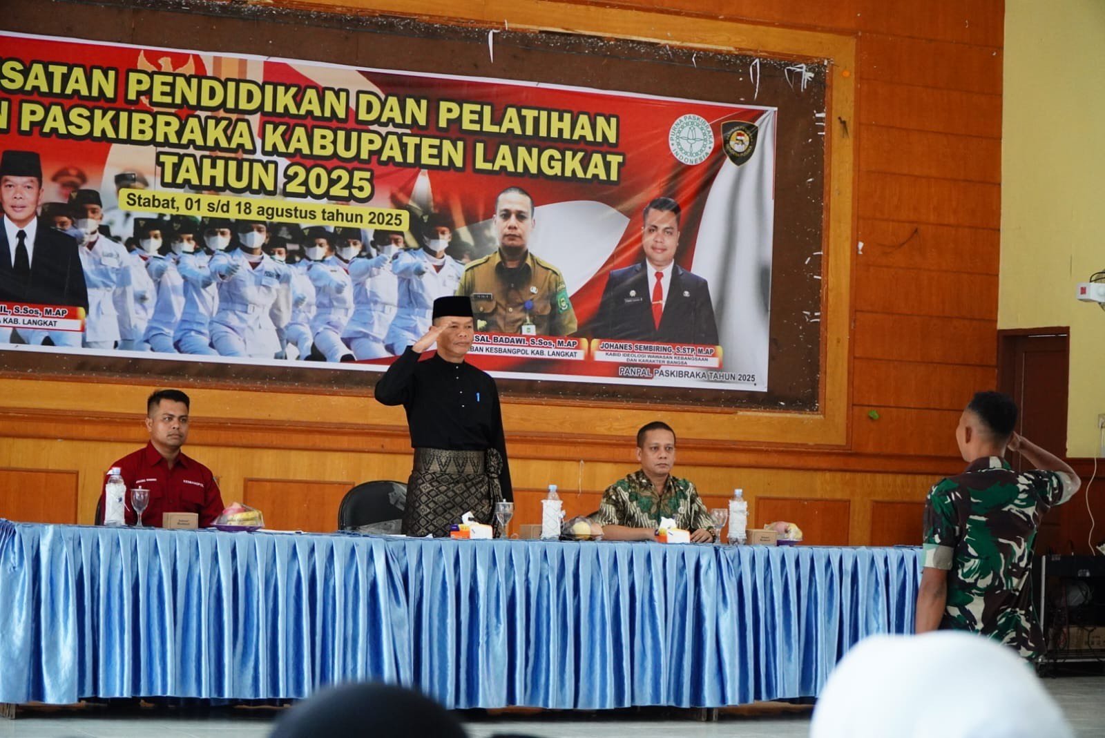 Langkat – Bupati Langkat H. Syah Afandin, SH melalui Sekretaris Daerah Kabupaten Langkat, Amril, S.Sos., M.AP secara resmi membuka Pemusatan Pendidikan dan Pelatihan (Diklat) Calon Pasukan Pengibar Bendera Pusaka (Paskibraka) Kabupaten Langkat Tahun 2025 yang digelar di Gedung PKK Kabupaten Langkat, Jumat (1/8/2025).