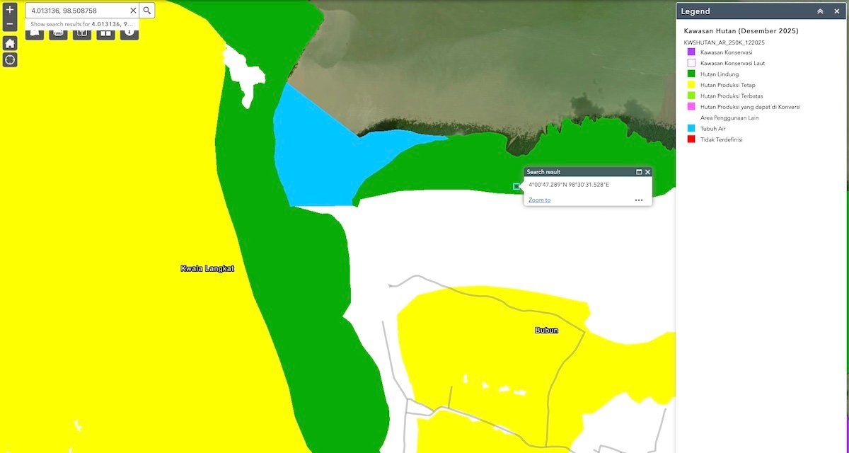 Dari pantauan udara, areal perkebunan sawit yang diduga milik AKP MG itu berdampingan dengan PT Aquanur Sinergindo. Dimana, sebahagian areal perkebunan sawit tersebut masuk dalam kawasan hutan lindung sebagai penyangga kehidupan.