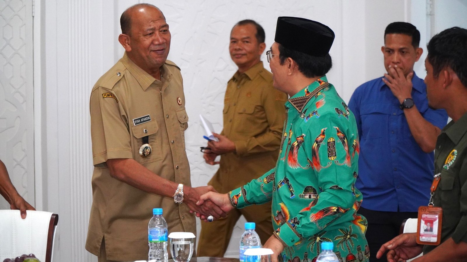 Langkat – Bupati Langkat H. Syah Afandin, SH menerima kunjungan kerja Anggota DPD RI, Penrad Siagian, S.Th di Ruang Kerja Bupati, Senin (13/10/2025).